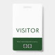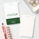Seja bem-vindo aos seus visitantes com este passe verde de visitante que contém a palavra "Visitor" em uma fonte fácil de ler sans serif em um fundo branco. O terço inferior do crachá inclui uma faixa verde com seu logotipo personalizável e uma mensagem para gentilmente deixar o crachá antes de sair.