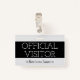 Este crachá de design contemporâneo apresenta a mensagem "VISITOR OFICIAL" e um nome personalizável da empresa ou outra mensagem personalizada. Um crachá como este poderia ser usado para identificar que alguém em um local de trabalho ou empresa é um convidado/visitante autorizado. [~Z0000307]