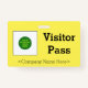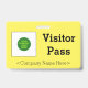 Este design conservador de crachás apresenta a mensagem "Visitor Pass" e um nome de empresa personalizável ou outra mensagem personalizada. Um crachá como este poderia talvez ser usado para indicar que uma pessoa é um convidado ou visitante conhecido e autorizado numa empresa ou local de trabalho. [~Z0000307]