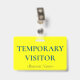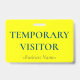 Este design básico do crachá contém a mensagem "TEMPORARY VISITOR" e um nome de empresa personalizável ou outra mensagem personalizada. Um crachá como este pode ser usado para identificar que alguém no local de trabalho ou em negócios é um convidado/visitante autorizado. [~Z0000307]