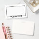 Nome de etiqueta Voluntário do Vazio com título em negrito negrito significa fonte de serif com espaço de vazio para seu nome em fundo branco com borda preta.