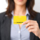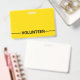 Nome do Voluntário do Vazio Amarelo Etiqueta com título em negrito negrito significa fonte serif com espaço de vazio para o seu nome em plano de fundo amarelo.
