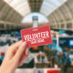 Crachá voluntário do vermelho com nome feito sob