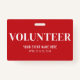 Um design de crachá de voluntários simples e profissional, perfeito para eventos, empresas ou organizações que dependem de voluntários. "Voluntário" é exibido de forma destacada no topo, com espaço abaixo para o evento ou nome comercial e data. Este crachá pode ser usado para eventos sem fins lucrativos, lares de idosos, centros comunitários ou dentro de um prédio para distinguir funcionarios, convidados e trabalhadores voluntários. O design apresenta uma tipografia branca limpa e fácil de ler num fundo vermelho, garantindo uma identificação clara. As cores de fundo e texto podem ser personalizadas para corresponder à marca ou ao tema do evento da sua organização. Quer se trate de eventos de curto prazo ou de programas de voluntários em curso, este crachá oferece uma forma polida e funcional de reconhecer aqueles que dão seu tempo.