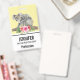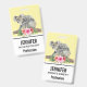 Nome crachá com um adorável design de aquarela. Mãe e bebê do urso Koala. O bebê está andando nas costas da mamãe. Em pé em um galho de árvore. Um buquê de flores de hibisco abaixo. Fundo amarelo de banana.