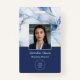 Showcase your name in style with this elegant white marble badge featuring blue and gold veining. Personalize with your name, title, logo and company information a cohesive branded look.