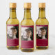 Essas mini etiquetas de garrafa de vinho apresentam um design simples, moderno e minimalista com sua foto em um fundo vermelho de amora e uma legenda com "Amor e Obrigados", assim como os nomes do casal e a data do casamento. Há também espaço para o tipo de vinho ou outro conteúdo da garrafa. Perfeito por agradecer convidados especiais.