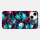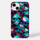 padrão de crânios coloridos e caóticos. Os crânios são, na sua maioria, azuis, com vários tons de espinhos e pingos cor-de-rosa e roxos. Alguns crânios têm dentes rachados e ossos quebrados, somando à natureza horrível e macabra da imagem. O fundo é preto, o que ajuda a destacar os crânios e fazer as cores pop.