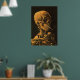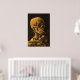 Nossa macabra impressão de poster apresenta uma das famosas pinturas mais escuras do artista poste-impressionista holandês Vincent van Gogh. Chamado de "Crânio com Cigarro em chamas", a boca do crânio está em um grão de rictus e o esqueleto está em amarelo suave, combinando o brilho de aquecimento do cigarro.