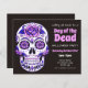 Procurando uma forma festiva e barato de convidar seus amigos para a festa do Dia das Bruxas Mortas? Não olhe mais do que o nosso personalizável Dia do Crânio de Açúcar do Convite do Festa de Halloween! Apresentando um incrível design de crânio de açúcar em tons azuis e violetas em um fundo preto, este convite em papel para baratos certamente define o tom perfeito para sua celebração. Com nossos campos de texto personalizáveis, você pode adicionar todos os detalhes importantes do seu partido, da data e hora ao local. Prepare-se para impressionar seus convidados com um convite que captura perfeitamente o espírito deste feriado festivo!