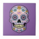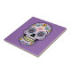 O crânio roxo do Dia de los Muertos é tão colorido com flores, coração e diamante.