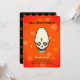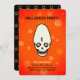 O crânio de cone assustador do Halloween no convite de festas de fundo preto e laranja. Todos os textos e números estão prontos para serem personalizados.