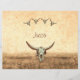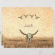 Papel de scrapbooking horizontal decoupage rústico vintage marrom bege com crânio de touro. Design de fundo de cenário único no estilo country western de fazenda antiga. Estilo cowboy do oeste selvagem. Quatro crânios em um padrão com tipografia de nome personalizado. Arte de animal de fazenda moderna e legal. Este papel de 110 lb pode ser usado para seu álbum de fotos, artesanato ou projetos de decoupage que exigem papel mais pesado. Direitos autorais da imagem Marg Seregelyi Photography.