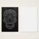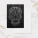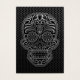 Esta design simétrica do crânio de açúcar é decorada com intrincados espirais verdes claros e padrões ponto. Os olhos do crânio são feitos de duas flores circulares e há uma estrela de cinco pontas no meio da testa. Uma sombra cai sobre a malha de aço dando ao padrão um aspecto industrial. Este crânio de açúcar na moda é uma interpretação única deste Dia dos Mortos.