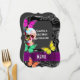 Crânio gótico moderno de fantasia alternativo no escuro preto barroco úmido e fita roxa com cardápio bonito e colorido de borboletas, personalize facilmente a noiva e os nomes de noivas aos modelos para criar um cardápio personalizado único para seu gótico especial ou dia das ocasiões e celebrações temerárias mortas. Visite a LOJA PERSONALIZED_ WEDDINGS para combinar conjuntos coordenados de suítes de casamento. PERSONALIZAR para ajustar o tamanho e a posição da fonte.