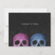 Meio crânio gótico Salve A Data. Divertido convite de casamento sagrado estilo vintage rosa, azul e preto. Texto gótico de casamento de Halloween assustador Até Que A Morte Nos Separe. Direitos autorais da imagem Marg Seregelyi Photography.