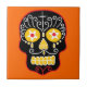 Azulejo do crânio de açúcar preto. A cor de fundo pode ser personalizada.