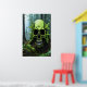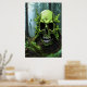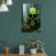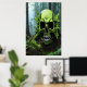 Um retrato de um crânio verde na floresta com árvores ao fundo. Esta é uma arte gerada por IA.