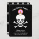 Crânios assustadores do Halloween no convite de festas preto de fundo. Todos os textos e números estão prontos para serem personalizados.