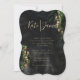 Este convite de casamento escuro e elegante apresenta um belo fundo de aquarela e um crânio de dragão seco pintado. O design cria um design orgânico e atraente, definindo o clima para um evento belo, escuro, mas elegante.