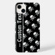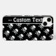 Capa de telefone de padrão crânio e bósforos em preto e branco com campo de texto editável. Disponível para Galaxy, iPhone, iPad e outros estilos populares de smartphone e tablet.