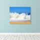 Uma bela vista oceânica de algumas ondas que caem ao longo da costa de uma praia arenosa.