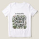 Cute funny crazy plant lady tee, plant lover humor gift, featuring decorative type and leafy greenery and plants. Gift it to an avid plant lover, gardener, landscaper. Wear you passion on an elegantly designed tee with "crazy plant lady" written in a decorative type with flourishes. A unique gift for plant lovers, gardeners, and plant service workers.