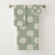 Cream Daisy Pattern Sage Green Bath Toalha