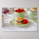 Imagem colorida representando um Creme Tea inglês. Cones com geleia e creme coagulado e, claro, morangos ingleses - a essência do verão. Parece excelente armado, perfeito para cafés, salões de chá ou em casa na cozinha.