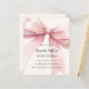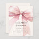 Um bege macio, fundo colorido creme, decorado com um arco cor-de-rosa grande. Personalize e adicione um nome e detalhes da parte. 1 folha = 1 convite impresso de borda a borda.