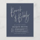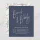 Um design simples e moderno que apresenta "Brunch & Bubble" em escrita com o nome da noiva em baixo em maiúsculas abertas. A data de celebração é exibida à esquerda em um layout empilhado com informações de local, endereço e rsvp à direita. As cartas invertem para uma linha elegante desenhando um padrão floral. Um design de caligrafia minimalista - é claro que combina com qualquer evento de bridal! O esquema de cores é uma combinação de creme e azul marinho. Mais variantes de cores estão disponíveis em nossa loja. Como parte da seleção orçamentária no Zazzle, esta folha não é um tamanho de convite padrão ou qualidade de papel. Se quiser que este design num cartão de convite o encontre na nossa loja ou utilize o Zazzle Make Machine para o transferir para o produto da sua escolha. Sinta-se livre para me enviar mensagens com qualquer pergunta relacionada a design!