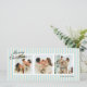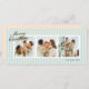 Pequenas faixas verticais natas e azuis dão a este cartão de três fotos uma vibração moderna e chic com fontes clássicas e uma longa mensagem personalizada para amigos e familiares.