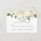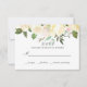 Projetado para coordenar com nossa coleção de casamento Creme e Ivory, esta elegante placa RSVP botânica apresenta um galho de flores brancas pintadas a aquarelas, derrubando sua resposta e data desejadas. Cartões invertendo para a cor clássica da cinza. Um design moderno e clássico para casamentos de primavera elegantes, jardins ou comemorações ao ar livre. Cores: verde verde, cor-de-rosa-pincel, bege, champanhe, baunilha, pêssego, branco. Outras cores disponíveis.