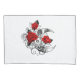 Contorno, lua da crista mecânica com engrenagens, decorada com rosas vermelhas com caules e folhas pretas em fundo branco. Steampunk