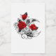 Contorno, lua da crista mecânica com engrenagens, decorada com rosas vermelhas com caules e folhas pretas em fundo branco. Steampunk