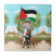 Cute Little Boy de Gaza, vestindo um Keffiyeh, e segurando a bandeira palestina, símbolo da liberdade e independência da Palestina livre. Ilustração gráfica original Vetor copyright BluedarkArt The ChameleonArt.