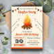 Incêndio aos seus convidados com este convite de aniversário divertido da fogueira apresentando uma bela fogueira e marshmallow com tipografia vibrante contra um fundo bege. Basta adicionar os detalhes do seu evento neste modelo fácil de usar para torná-lo um convite de tipo único. Sacudir a placa para revelar uma textura rústica de madeira de celeiro na parte traseira da placa.