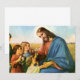 Ilustração antiga de design religioso com Jesus Cristo e crianças que o adoram e lhe trazem flores.