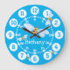 Crianças Arte aquarela e relógio gráfico de parede. Este relógio colorido de crianças engraçadas inclui minutos e horas para ajudar a fazer a brincadeira da criança de contar o tempo. Personalize com o nome abreviado de sua escolha, lendo atualmente Bethany. Projetada e pintada exclusivamente por Sarah Trett. Um excelente a acrescentar a uma abelha ou ao quarto de uma criança amante da natureza que está aprendendo a ler um rosto do relógio.