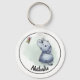 Crianças chaveiro com um bebê elefante giro sentado olhando para uma borboleta com nome.