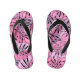 Os chinelos para crianças são mostrados em preto, com folhas tropicais bonito impressão design com precintas pretas finas. Cor Preto/Rosa Personalize este item ou comprar como está. imagem de estoque freepik.com