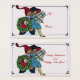 Cartão de natal elegante e alegre em vermelho vibrante, branco, azul, cores verdes.