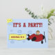 Convites de festas de aniversários de avião com um plano vermelho e uma faixa. Adicione o nome e os detalhes da festa do Filho a este convite divertido.