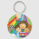 Um design com um monte de crianças correndo num arco-íris colorido. Esta design parece realmente eficaz nestes Chaveiro