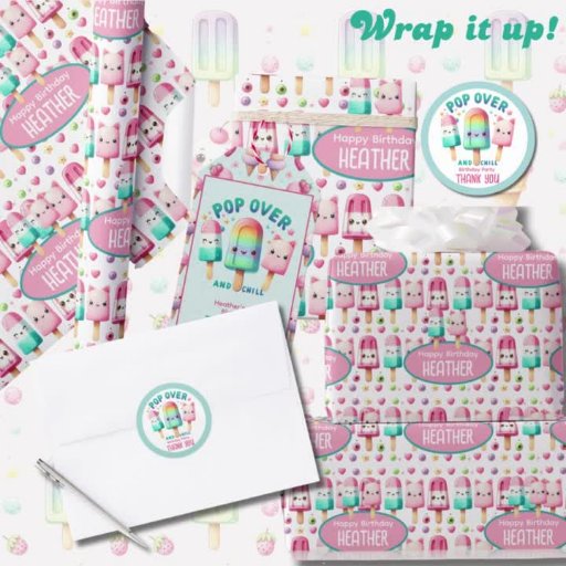 Pop de gelo, Sorvete, item de evento da Festa de Verão de Picolé para o aniversário de crianças, neutro para o sexo de filho ou filha. Design por LeahG. Gráficos por Grafixdeals.com.