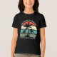 Fofo de reunião familiar de verão, crianças de férias de praia misturam camisetas para crianças vestirem em um cruzeiro ilha ou uma viagem à beira-mar tropical. Possui belas palmeiras em frente a um pôr do sol bonito. Camisetas personalizadas para todos os rapazes e raparigas de um grupo. Personalizar com o nome ou ano.