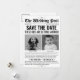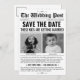 Prepare-se para compartilhar o entusiasmo do seu casamento com um único cartão de jornal Save the Date! Este anúncio encantador sobre os jornais foi feito para impressionar seus convidados, com todos os detalhes essenciais em ambos os lados e espaço para uma foto pessoal na frente. Com uma modelo totalmente editável, é a maneira perfeita de tornar sua celebração de casamento realmente memorável.
