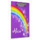 Arco-íris com gráficos coloridos, prancheta de meninas. Personalize com seu nome. Atualmente, lê Alicia. Desenvolvido exclusivamente pela Sarah Trett.