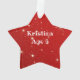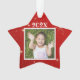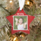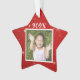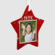 Enfeites de natal de fotos em forma de estrela para meninos ou meninas. Fundo das estrelas vermelhas e cintilantes, com fotografia no centro, na frente e no ano. Mais texto pode ser adicionado ao verso para listar um nome e uma idade ou outro texto. Mantenha todo o texto afastado das bordas! Use para crianças ou animais de estimação e dê como presentes para as granjas!
