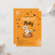 O convite para o Dia das Bruxas das Crianças de Laranja Brilhante com um fantasma giro, uma mancha de abóbora e um monstro lúdico — perfeito para festas de truques ou trajes amigáveis à família. Descrição do cheio (campo Zazzle): Chamando todos os pequenos fantasmas e goblins! Este convite animado para o Dia das Bruxas dá o tom para uma celebração divertida, não muito assustadora. Apresentando um fundo laranja ousado, fantasma sorridente, monstro cartoon amigável, abóboras, morcegos, aranhas e teias, é a mistura perfeita de assustador e fofo. Personalize facilmente com o nome do seu filho, os detalhes da festa, a data, a hora e o RSVP. Ideal para crianças de tenra idade, pré-escola, festas de escolas elementares, reuniões de truques ou de tratamento de bairros e festas de blocos familiares. Torne o Dia das Bruxas mais memorável com um convite que crianças e pais irão amar — personalizar, pré-visualizar instantaneamente e fazer pedidos hoje.